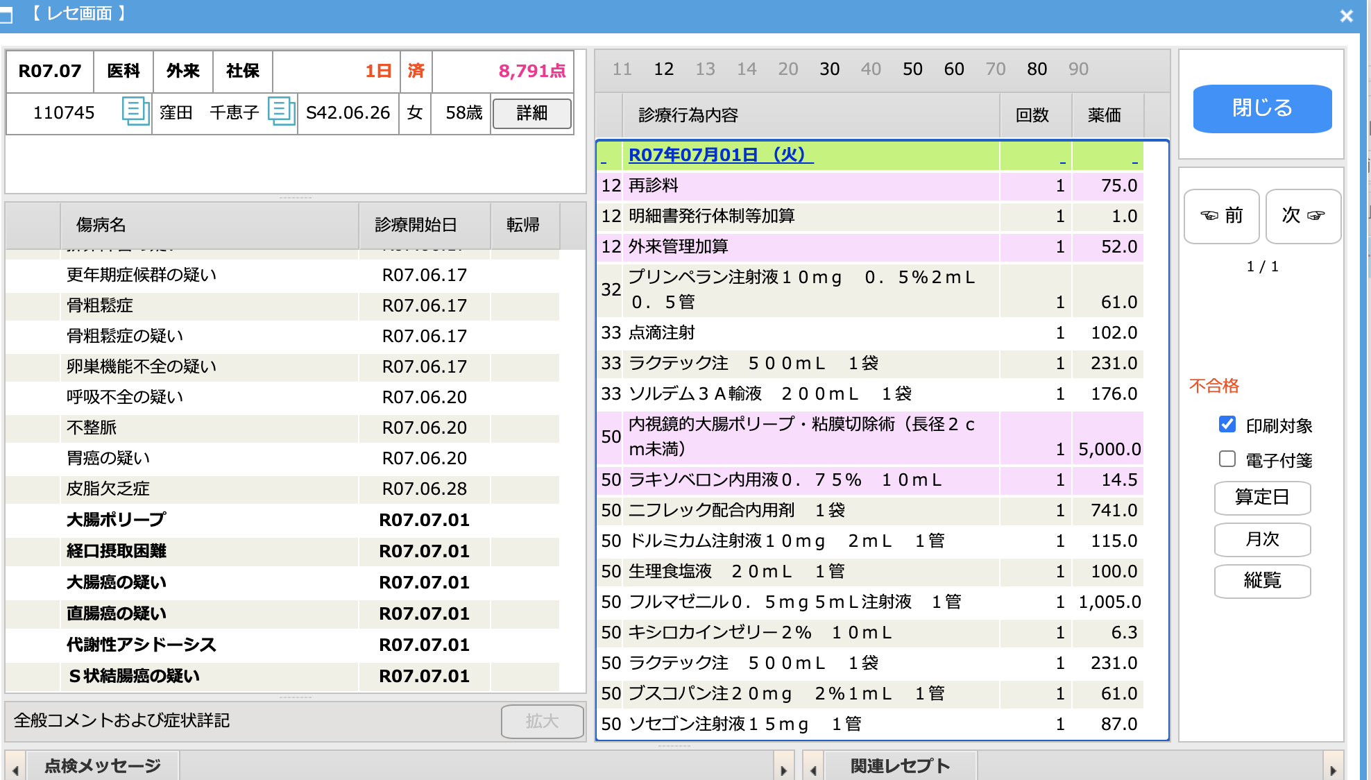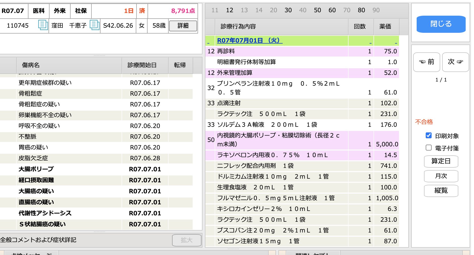 画像を添付しております(参考医療機関ID:nc11431139 7月診療分 患者ID:110745)