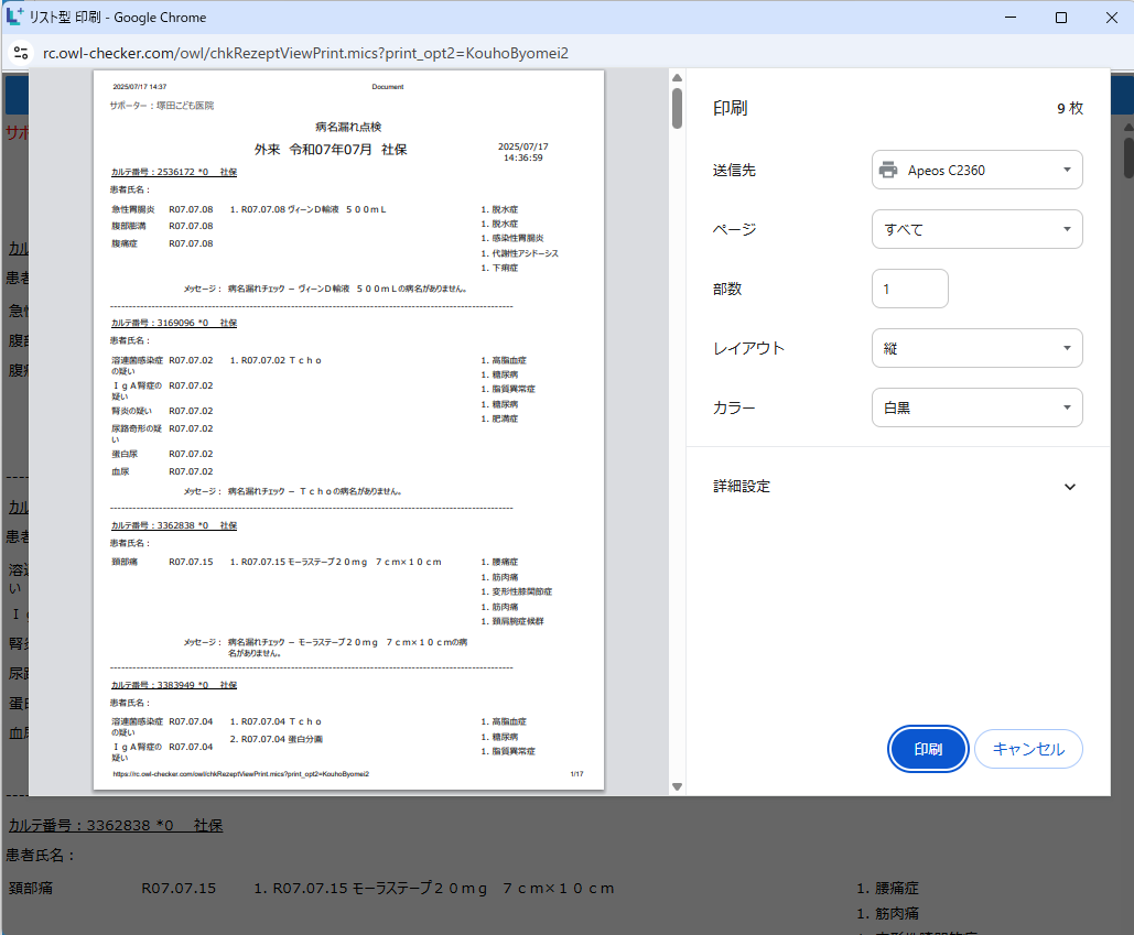 点検業務 > レセ画面点検 で不合格一覧が印刷できない。
