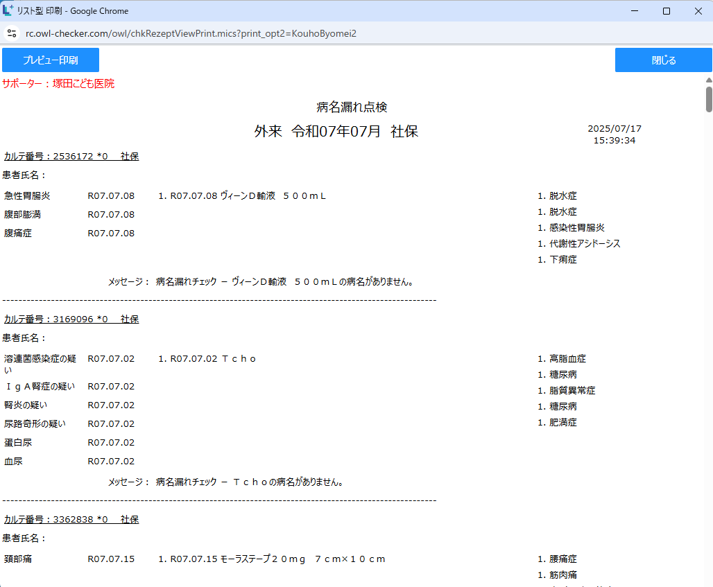 医療機関名: | 塚田こども医院 | カルテ番号: | 00000 | ||
