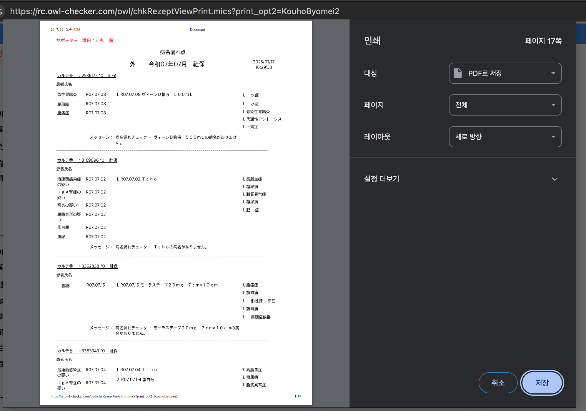 점검업무 > 리세 화면 점검에서 불합격 일람을 인쇄할 수 없다.