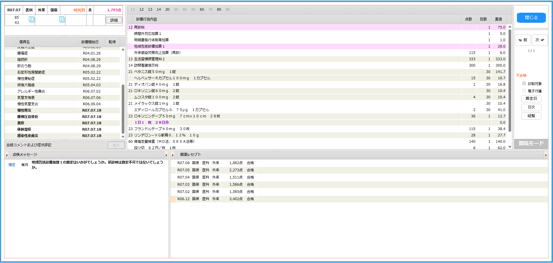 点検メッセージは 地域包括診療加算1の算定はいかがでしょうか。初診時は算定不可ではないでしょうか。
